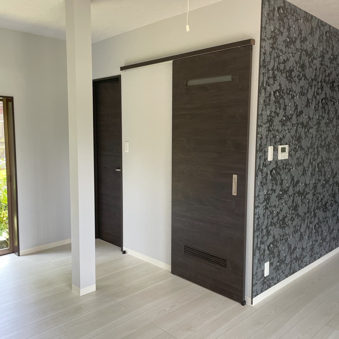 廊下の壁の一部にはエコカラットを施工しています。