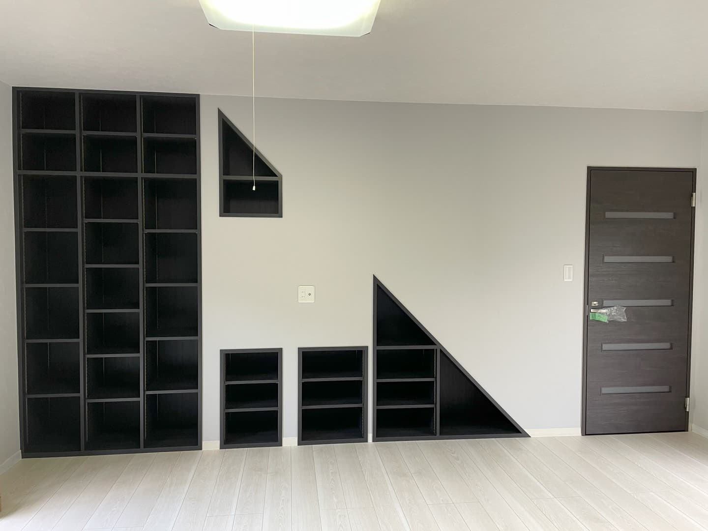 お客様の要望で押入があった場所にTVスペースと収納棚を造りました。